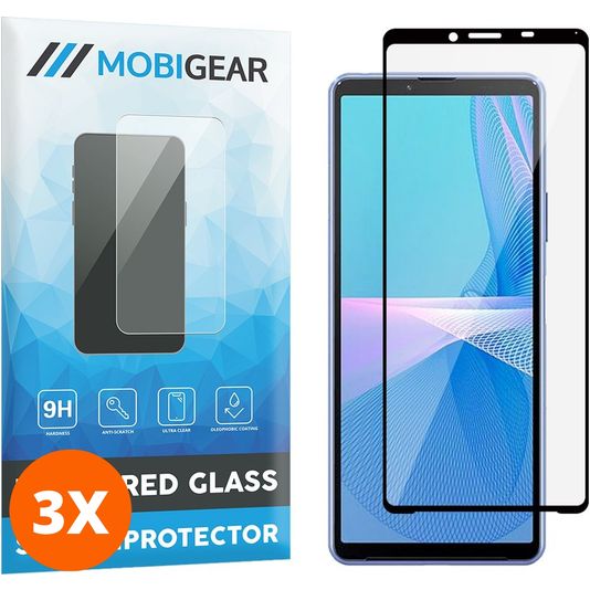 Mobigear Premium Sony Xperia 10 III Verre trempé Protection d'écran - Compatible Coque - Noir (Lot de 3)