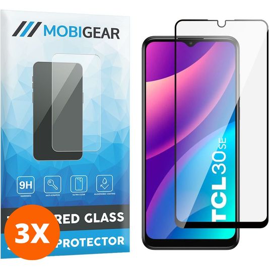Mobigear Premium TCL 30 SE Verre trempé Protection d'écran - Compatible Coque - Noir (Lot de 3)