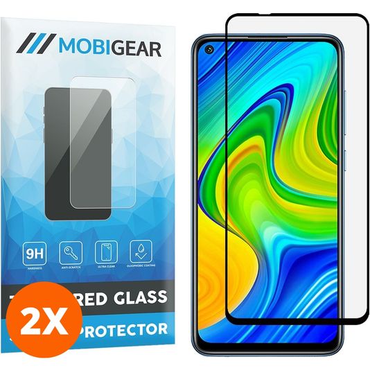 Mobigear Premium Xiaomi Redmi Note 9 Verre trempé Protection d'écran - Compatible Coque - Noir (Lot de 2)