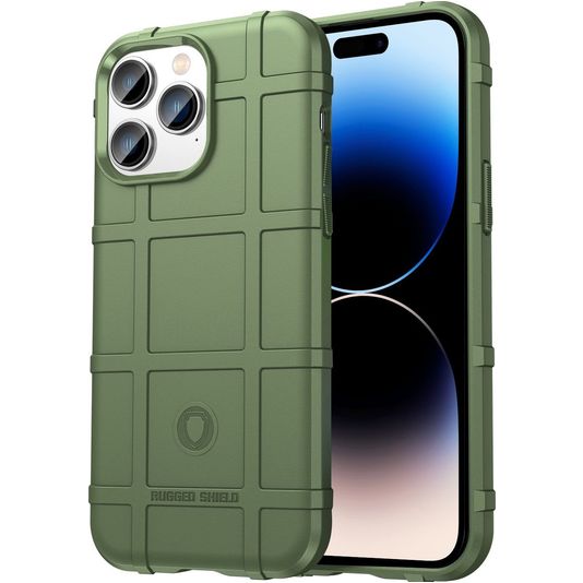 La coque arrière en plastique TPU flexible Mobigear Rugged Shield Apple iPhone 14 Pro Max est extra résistante. Le matériau TPU flexible qui absorbe les chocs protège ton appareil des dommages causés par les chutes et les bosses. La coque est disponible dans la couleur vert.