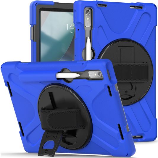 Mobigear SureGrip XGuard Coque Lenovo Tab P11 Pro Gen 2 Coque arrière en Plastique rigide,Silicone + Porte-crayon + Support Amovible - Bleu