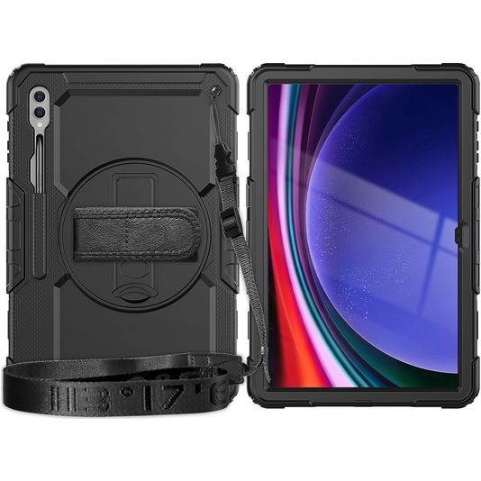 Mobigear SureGrip Xtreme Coque Samsung Galaxy Tab S9 Ultra Coque arrière en Plastique rigide,Silicone + Bandoulière + Support Amovible - Noir