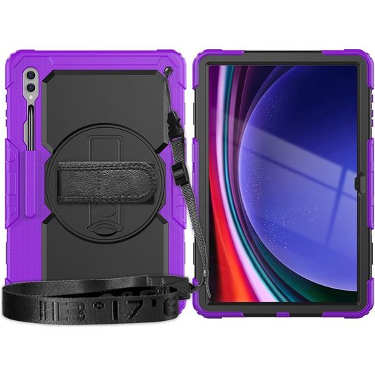 Mobigear SureGrip Xtreme Coque Samsung Galaxy Tab S9 Ultra Coque arrière en Plastique rigide,Silicone + Bandoulière + Support Amovible - Violet