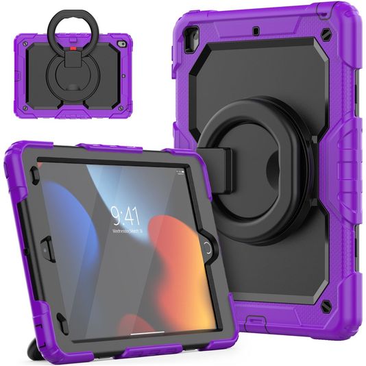 Mobigear RingGuard Coque iPad 9 (2021) Coque arrière en Plastique rigide,Silicone + Support Amovible - Violet