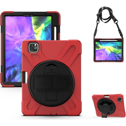 Mobigear SureGrip XGuard Coque iPad Air 4 (2020) Coque arrière en Plastique rigide,Silicone + Porte-crayon + Bandoulière + Support Amovible - Rouge