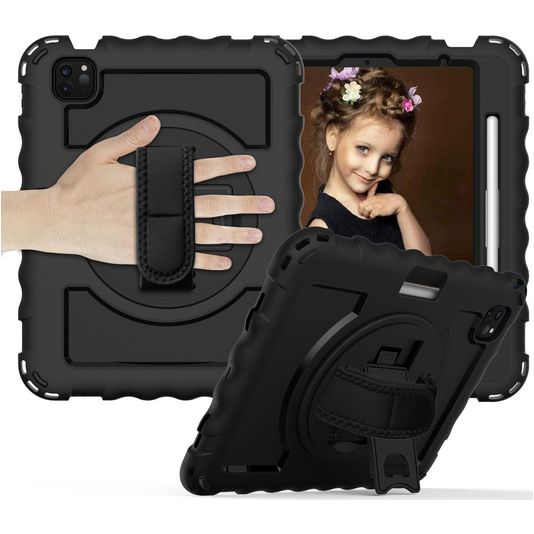 Mobigear SureGrip Xtreme Coque iPad Air 4 (2020) Coque arrière en Plastique rigide,Silicone + Porte-crayon + Bandoulière + Support Amovible - Noir
