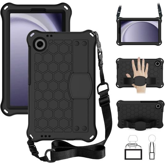 Mobigear HexStrap Coque Samsung Galaxy Tab A9 (2023) Coque arrière en EVA + Bandoulière - Noir