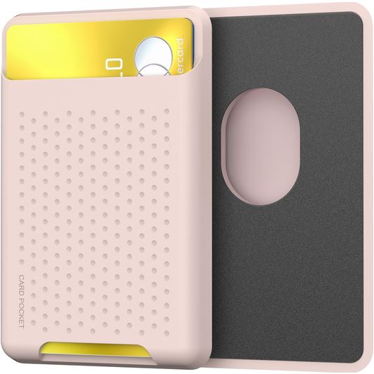 Le porte-cartes compatible MagSafe Mobigear Pocket est disponible dans la couleur rose et est fabriqué en silicone flexible de luxe.