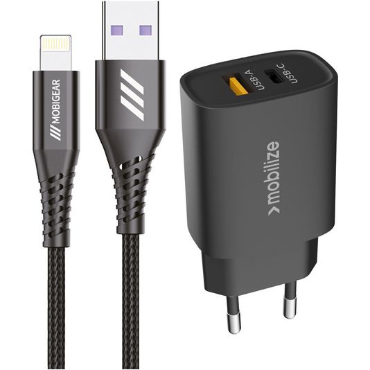 Mobigear Essentials - Simple USB-C Chargeur Apple Lightning 1 mètre Power Delivery 20W - Noir