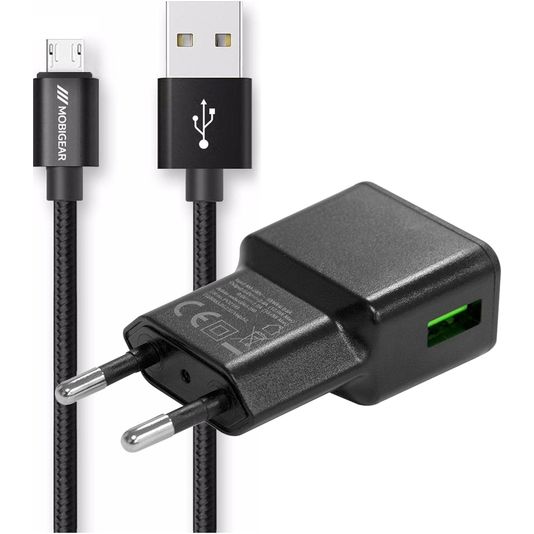 Mobigear Essentials - Simple USB Chargeur Micro USB 1 mètre 12W 2.4A - Noir