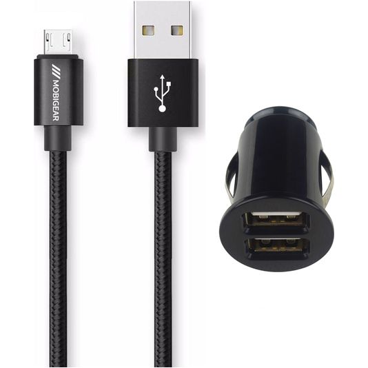 Mobigear Essentials - Simple USB Chargeur voiture Micro USB 1 mètre 12W 2.4A - Noir