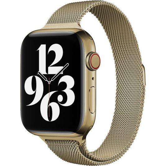 Améliore ton Apple Watch avec le bracelet milanais Mobigear Slim Loop de couleur or bronze. Cet accessoire élégant et raffiné allie forme et fonction, ce qui en fait le complément idéal de ton Apple Watch. Le bracelet milanais Apple Watch est fabriqué en acier inoxydable de première qualité. Le bracelet milanais Mobigear Slim Loop est luxueux et exceptionnellement durable. Le bracelet est fait d'acier inoxydable finement tissé, ce qui assure un ajustement lisse et confortable au poignet. La flexibilité et la structure respirante de la maille milanaise assurent un confort de port optimal, même en cas d'utilisation prolongée.