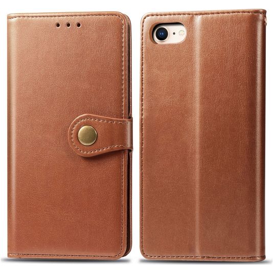 Mobigear Snap Button Housse iPhone SE (2020) Etui Porte-Monnaie - Cognac