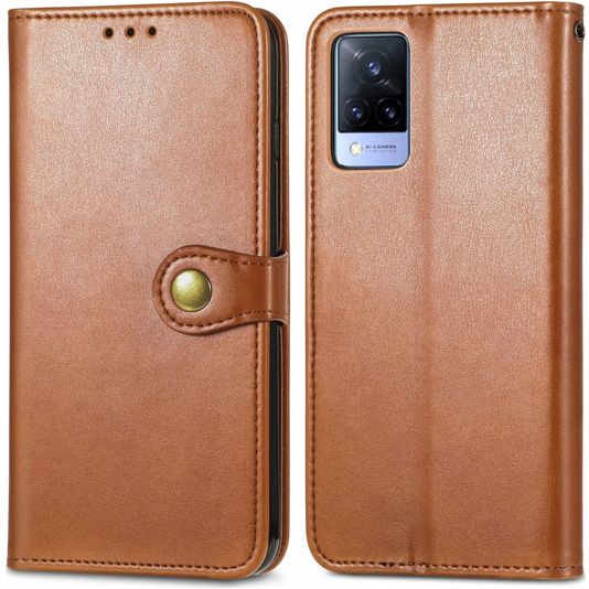Mobigear Snap Button Housse Vivo V21 Etui Porte-Monnaie - Marron