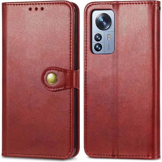 Mobigear Snap Button Housse Xiaomi 12 Pro Etui Porte-Monnaie - Rouge