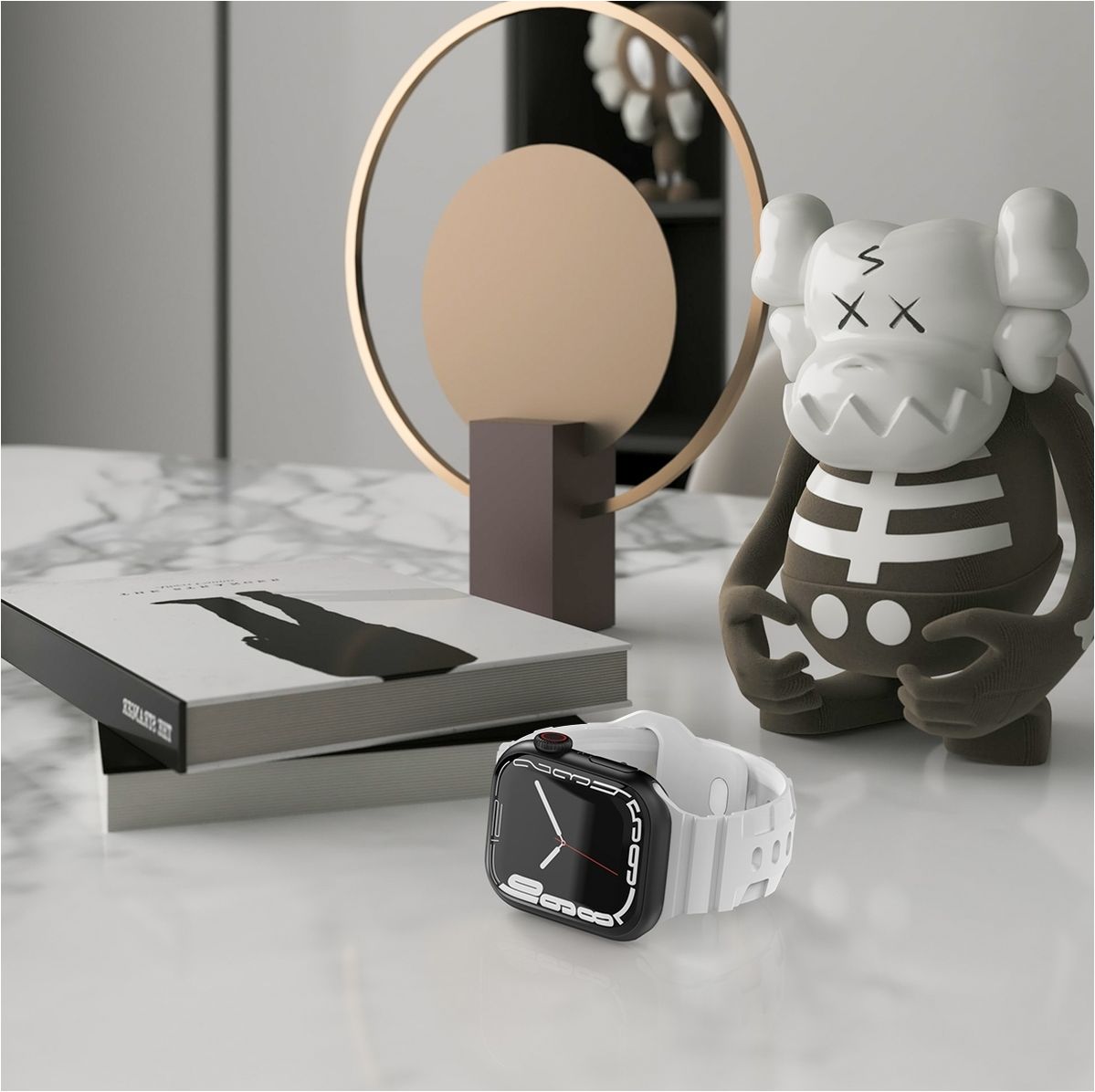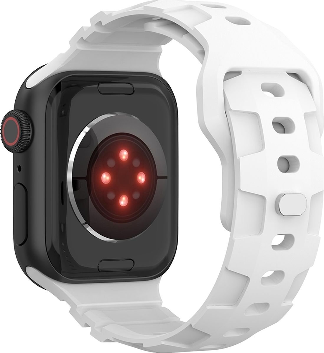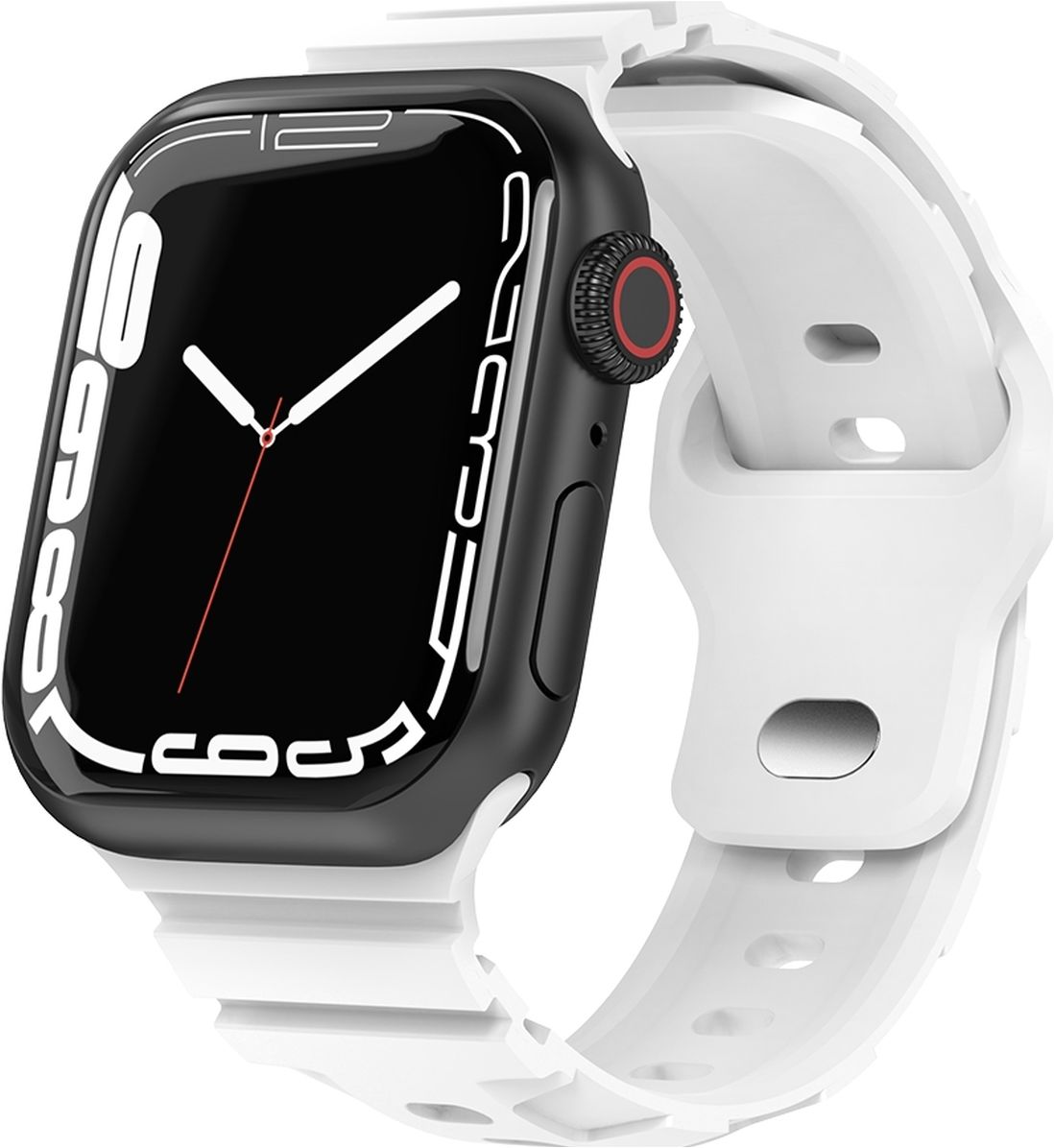 Mobigear Sport Armor Bracelet Silicone Apple Watch Fermeture à clou et passant - 49/46/45/44 mm - Blanc
