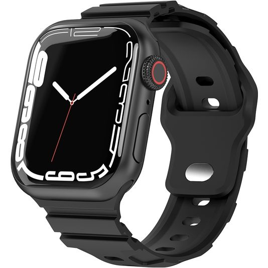 Mobigear Sport Armor Bracelet Silicone Apple Watch Fermeture à clou et passant - 49/46/45/44 mm - Noir