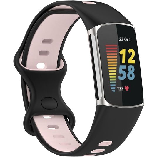 Mobigear Sport Dual Bracelet Silicone Fitbit Charge 5 Fermeture à clou et passant - Noir / Rose
