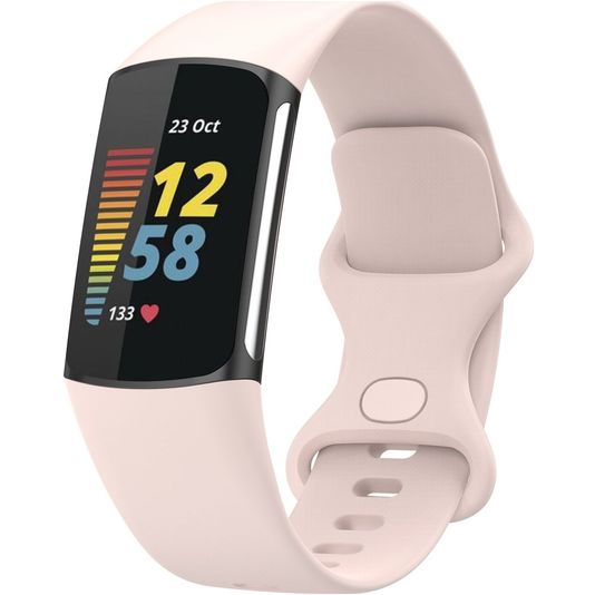 Mobigear Sport Dual Bracelet Silicone Fitbit Charge 5 Fermeture à clou et passant - Sand Pink