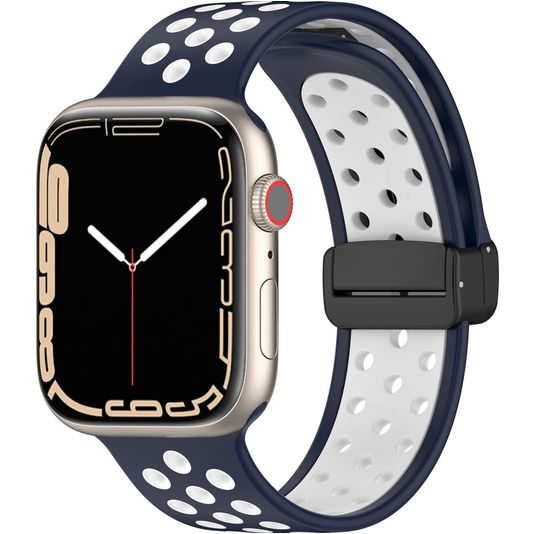 Mobigear Sport Plus Mag Bracelet Silicone Apple Watch Fermeture magnétique - 42/41/40/38 mm - Blanc / Bleu Marin