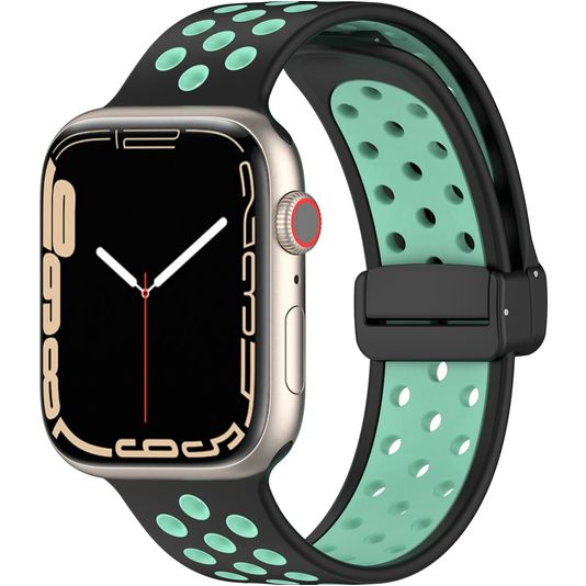 Mobigear Sport Plus Mag Bracelet Silicone Apple Watch Fermeture magnétique - 42/41/40/38 mm - Noir / Turquoise