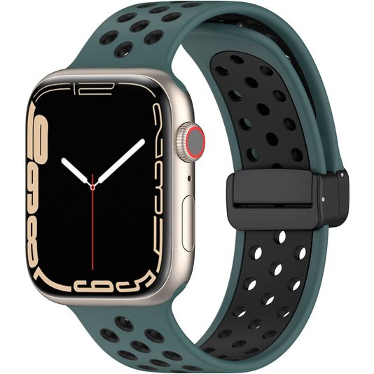 Mobigear Sport Plus Mag Bracelet Silicone Apple Watch Fermeture magnétique - 42/41/40/38 mm - Noir / Vert