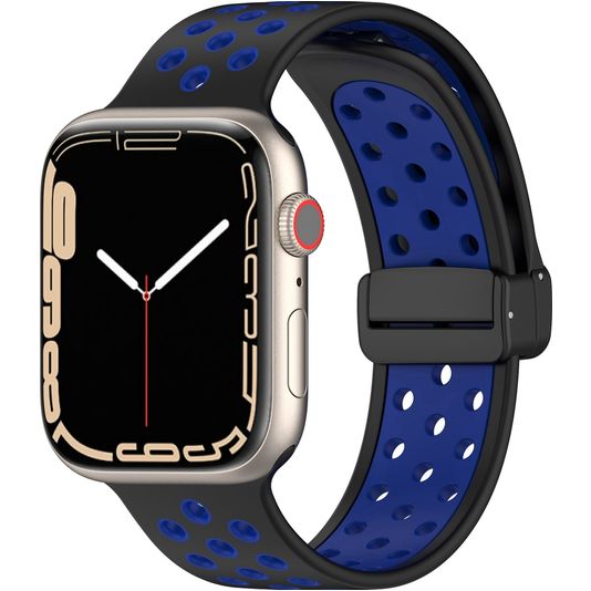 Mobigear Sport Plus Mag Bracelet Silicone Apple Watch Fermeture magnétique - 49/46/45/44 mm - Noir / Bleu