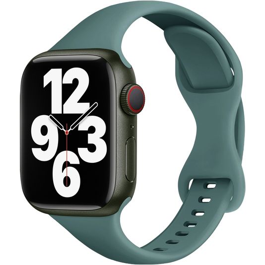 Ce bracelet Mobigear Sport Slim Apple Watch de couleur vert est fabriqué en silicone durable, léger et flexible. Un bracelet Apple Watch en silicone offre un confort et une fonctionnalité ultimes, ce qui le rend idéal à la fois pour un usage quotidien et pour les activités sportives. Le silicone est un matériau doux, flexible et agréable à la peau qui se moule confortablement autour du poignet. Il résiste à l'eau et à la sueur, ce qui le rend parfait pour les séances d'entraînement, la natation et les autres activités où tu es actif. Le bracelet Mobigear Sport Slim est facile à nettoyer et ne nécessite qu'un minimum d'entretien.