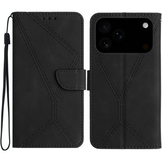 Mobigear Stitch Housse iPhone 17 Pro Etui Porte-Monnaie - Noir