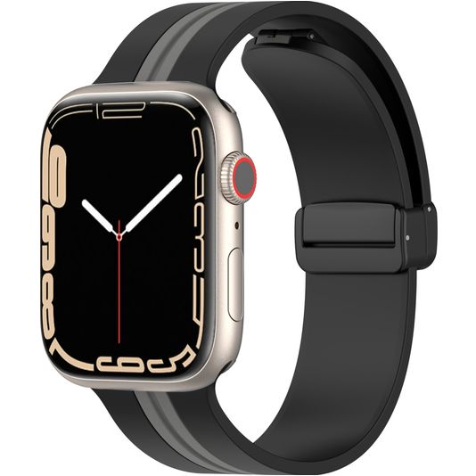 Mobigear Stripe Mag Bracelet Silicone Apple Watch Fermeture magnétique - 42/41/40/38 mm - Noir / Gris