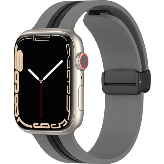 Mobigear Stripe Mag Bracelet Silicone Apple Watch Fermeture magnétique - 42/41/40/38 mm - Noir / Gris