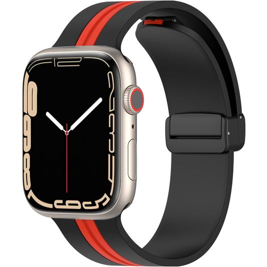 Mobigear Stripe Mag Bracelet Silicone Apple Watch Fermeture magnétique - 42/41/40/38 mm - Noir / Rouge