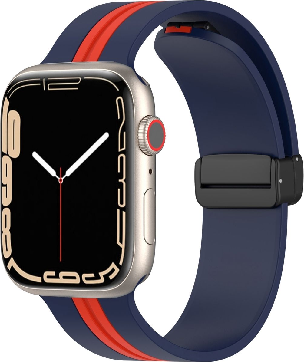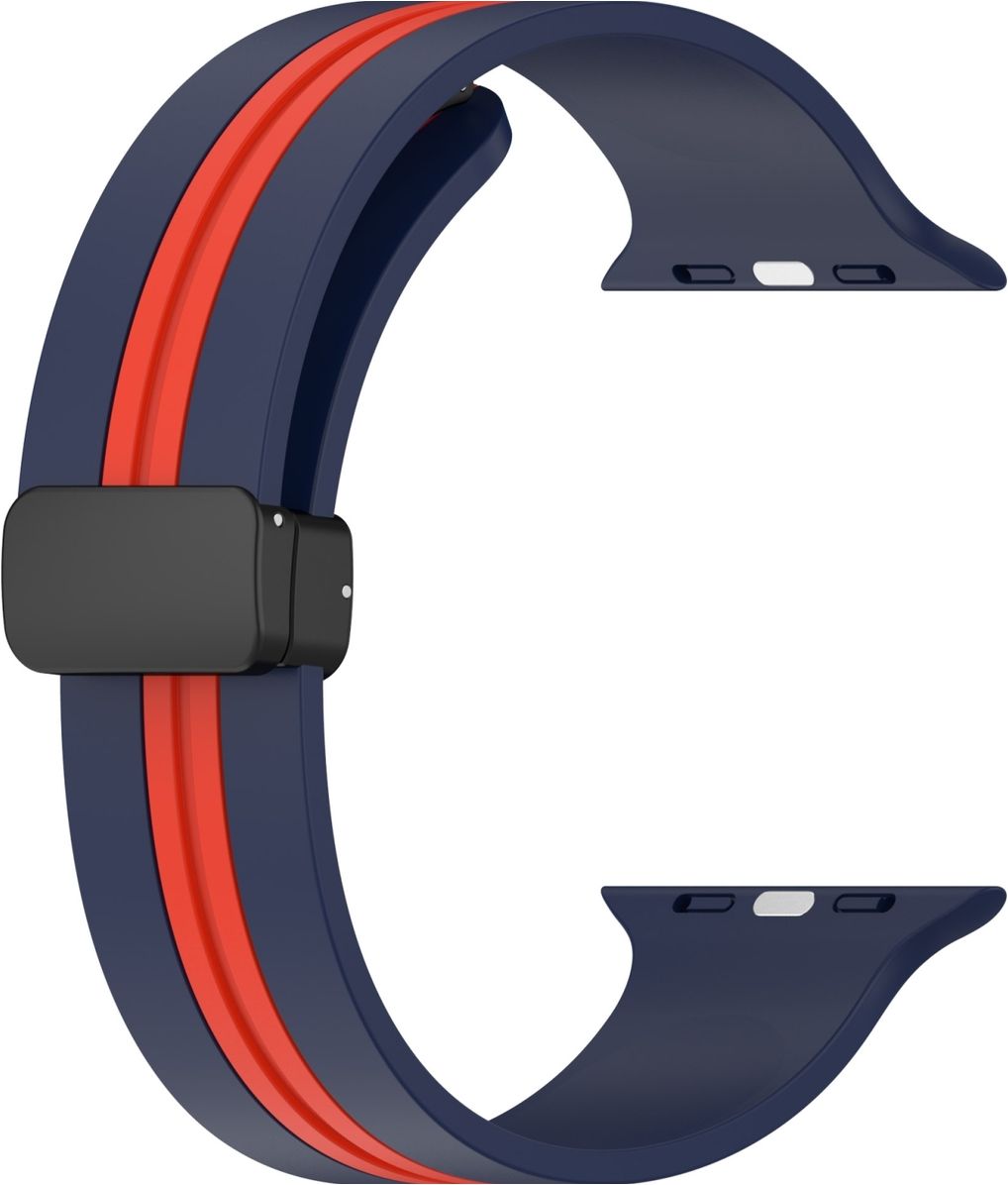 Mobigear Stripe Mag Bracelet Silicone Apple Watch Fermeture magnétique - 42/41/40/38 mm - Rouge / Bleu Marin