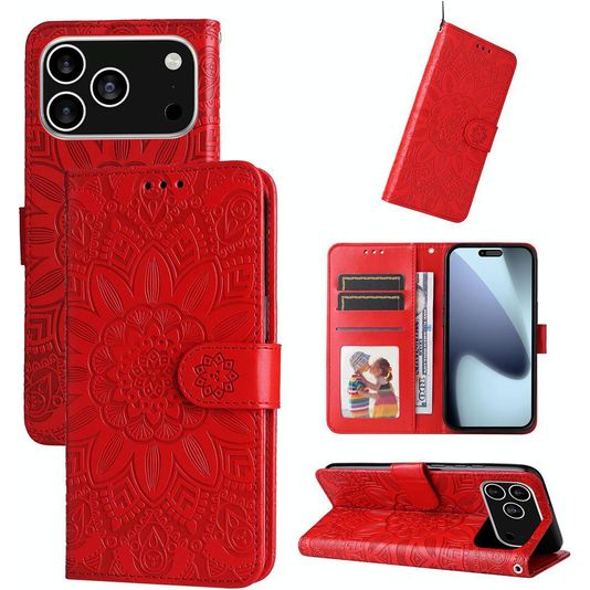 Mobigear Sunflower Housse iPhone 17 Pro Etui Porte-Monnaie - Rouge