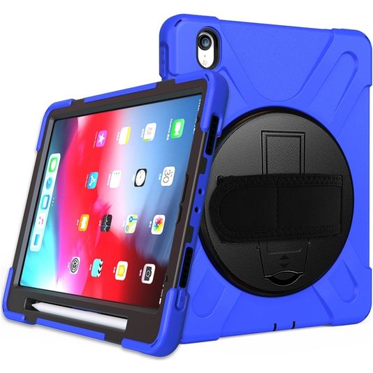 Mobigear SureGrip XGuard Coque iPad Pro 11 Pouces (2024) Coque arrière en Plastique rigide,Silicone + Porte-crayon + Bandoulière + Support Amovible - Bleu
