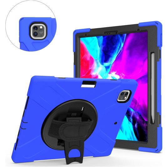 Mobigear SureGrip XGuard Coque iPad Pro 13 Pouces (2024) Coque arrière en Plastique rigide,Silicone + Porte-crayon + Bandoulière + Support Amovible - Bleu