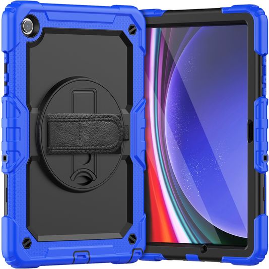 Mobigear SureGrip Xtreme Coque Samsung Galaxy Tab A9 Plus (2023) Coque arrière en Plastique rigide,Silicone + Bandoulière + Support Amovible - Bleu