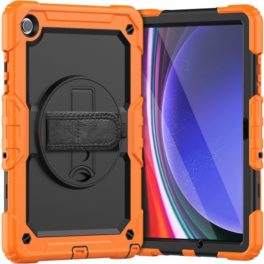Mobigear SureGrip Xtreme Coque Samsung Galaxy Tab A9 Plus (2023) Coque arrière en Plastique rigide,Silicone + Bandoulière + Support Amovible - Orange