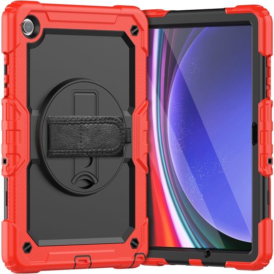 Mobigear SureGrip Xtreme Coque Samsung Galaxy Tab A9 Plus (2023) Coque arrière en Plastique rigide,Silicone + Bandoulière + Support Amovible - Rouge
