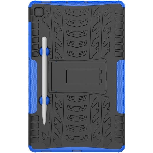 Mobigear Tire Coque Samsung Galaxy Tab S6 Lite Coque Arrière Rigide Antichoc + Porte-crayon + Support Amovible - Noir / Bleu