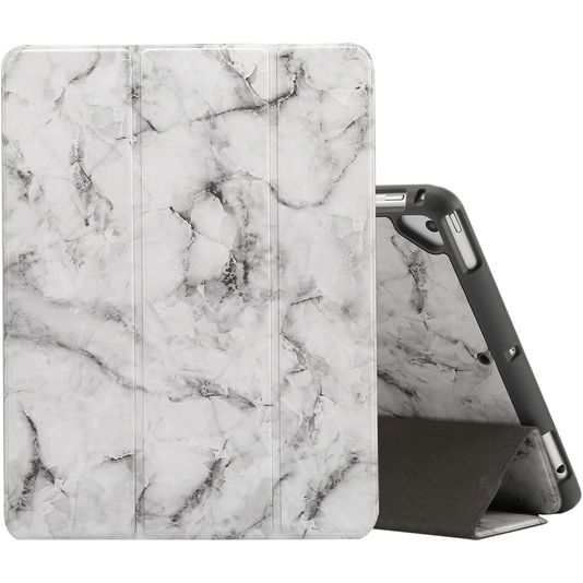 Tu cherches un étui Apple iPad 6 (2018) qui protège ta tablette sur tout son pourtour ? Cet étui Mobigear Tri-Fold Marble avec couvercle avant offre une protection complète. L'étui est disponible dans la couleur gris et est fabriqué en simili-cuir de haute qualité. En outre, l'étui de protection Mobigear Tri-Fold Marble est doté d'un support pour un stylet. Ainsi, tu as toujours le stylet à portée de main et tu peux utiliser ton Apple iPad 6 (2018) de manière optimale. Le stylet n'est pas inclus dans ce produit.