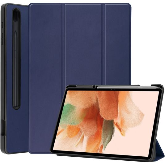 Mobigear Tri-Fold Gel Coque Samsung Galaxy Tab S7 FE Etui en TPU,Similicuir + Porte-crayon - Dark Blue