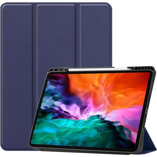 Mobigear Tri-Fold Gel Coque iPad Pro 12.9 Pouces (2021) Etui en TPU,Similicuir + Porte-crayon - Dark Blue