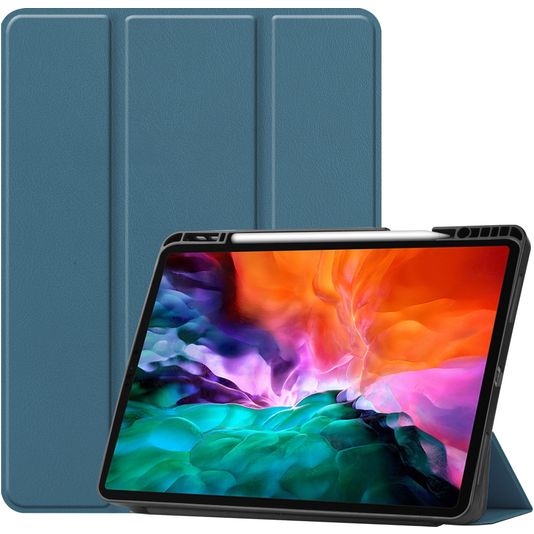 Mobigear Tri-Fold Gel Coque iPad Pro 12.9 Pouces (2021) Etui en TPU,Similicuir + Porte-crayon - Vert