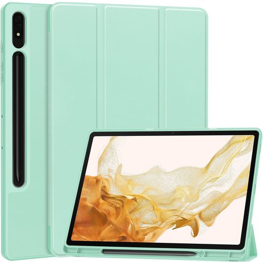 Mobigear Tri-Fold Gel Coque Samsung Galaxy Tab S9 Plus Etui en TPU,Similicuir + Porte-crayon - Turquoise