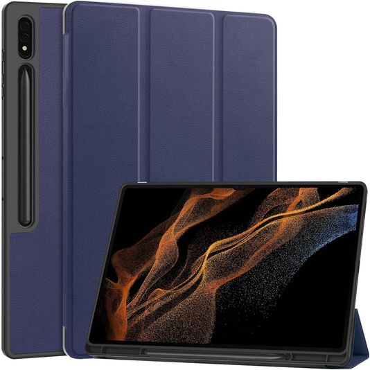 Mobigear Tri-Fold Gel Coque Samsung Galaxy Tab S9 Ultra Etui en TPU,Similicuir + Porte-crayon - Dark Blue