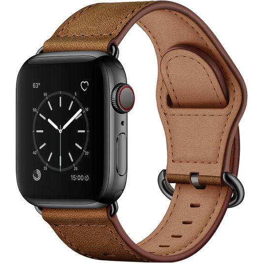 Mobigear Venezia Bracelet Cuir Apple Watch Fermeture boucle ardillon - 42/41/40/38 mm - Cognac