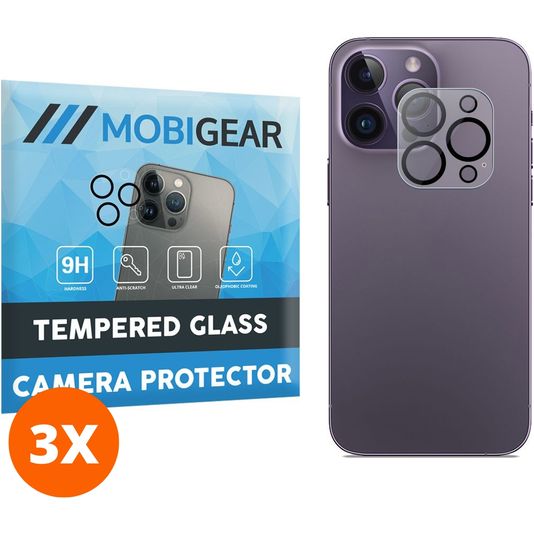 Le protection objectif caméra est facile à installer avec les outils fournis. Cet ensemble de produits contient 3 pièces Mobigear verre trempé Apple iPhone 14 Pro protection objectif caméra.
