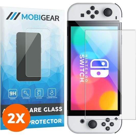 Mobigear Nintendo Switch OLED Verre trempé Protection d'écran - Compatible Coque - Noir (Lot de 2)
