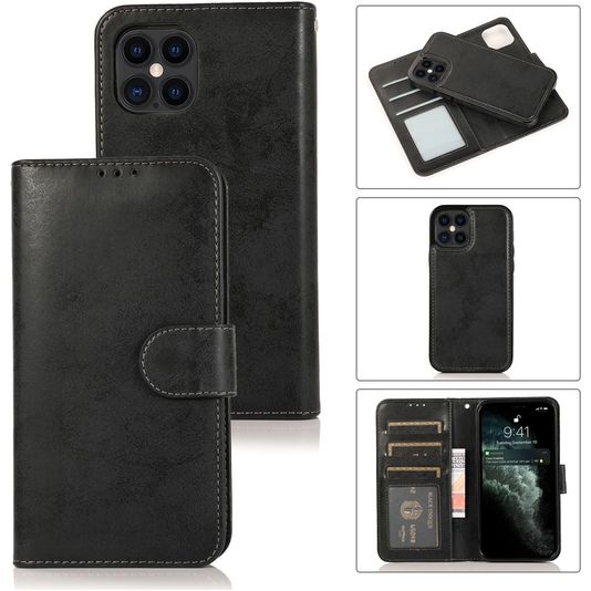 Mobigear Wallet Housse iPhone 12 Etui avec Coque Détachable Porte-Monnaie - Noir